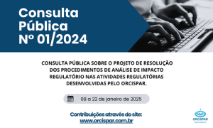 Está aberta a Consulta Públicas 01/2025 sobre projeto de resolução dos procedimentos de análise de impacto regulatório nas atividades regulatórias desenvolvidas pelo ORCISPAR.