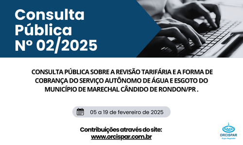 Está aberta a Consulta Públicas 02/2025 sobre a revisão tarifária e a forma de cobrança do Serviço Autônomo de Água e Esgoto do município de Marechal Cândido de Rondon/PR -.