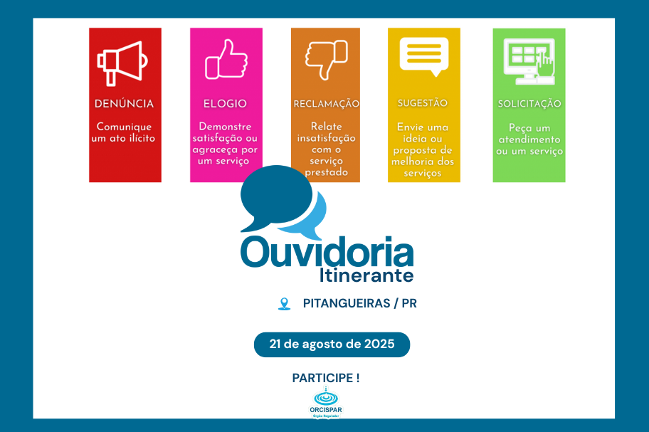 No dia 21 de agosto, a Ouvidoria Itinerante do ORCISPAR estará presente na Central, no município de Pitangueiras – PR.
