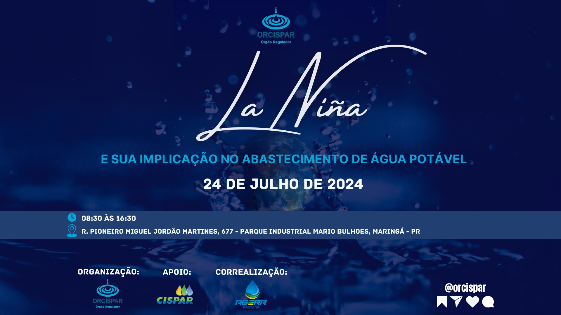 Temos o prazer de convidá-lo para o evento LA NIÑA E SUA IMPLICAÇÃO NO ABASTECIMENTO DE ÁGUA POTÁVEL, que acontecerá no dia 24 de julho de 2024 ás 08:30.